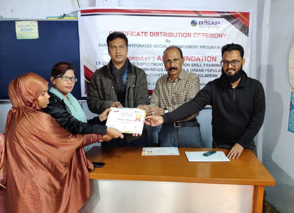 Upon successful completion, 250 trainees underwent final evaluations and were awarded certificates in Machine Operation and Sewing, acknowledging their newly acquired competencies. The Certificate Distribution Ceremony was held with great enthusiasm, attended by trainers, BISAP officials, community leaders, guardians, teachers, and religious figures, reinforcing the social value of women’s skills and motivating participants to pursue productive livelihoods.